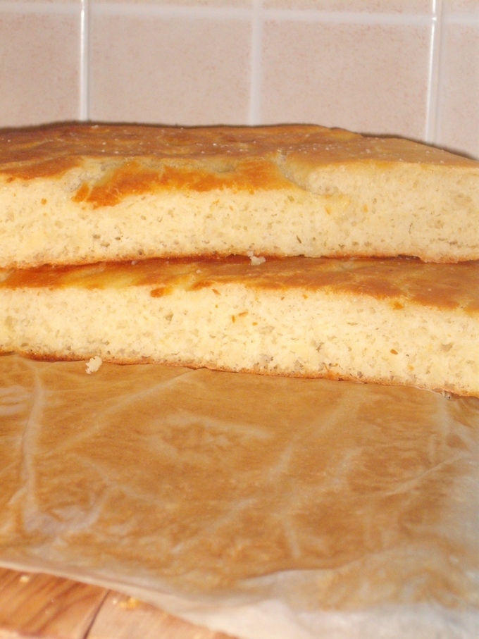 Ingredienti: 500g di farina''00''; 200gdi farina manitoba ; 300g di patate lesse ; 1 cubetto di lievito di birra ; sale;zucchero un pizzico;acqua q.b.x rendere l'impasto omogeneo; 2 cucchiai di olio.Procedimento: impastare tutti gli ingredienti ad eccezione dell'olio (che servirà x ungere la nostra focaccia dopo prima lievitazione),far lievitare x circa 1 ora e mezza,impastare nuovamente il tutto ed adagiarlo in una teglia unta di olio,lasciar lievitare x circa 2 ore.Una volta lievitata ungerla con i 2 cucchiai di olio ed infornare a 180° fino a quando non sarà dorata.Può essere mangiata con affettati e formaggi.