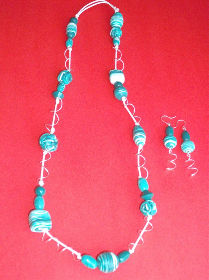Ebbene sono riuscita ad assemblare la collana e gli orecchini che mi era stata ordinata da Rosa.Ho voluto dare un pò di movimento con l'aggiunta di aspirali fatte a mano