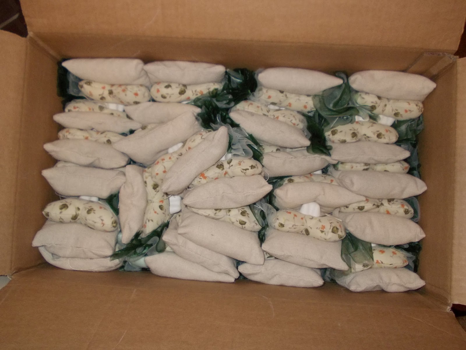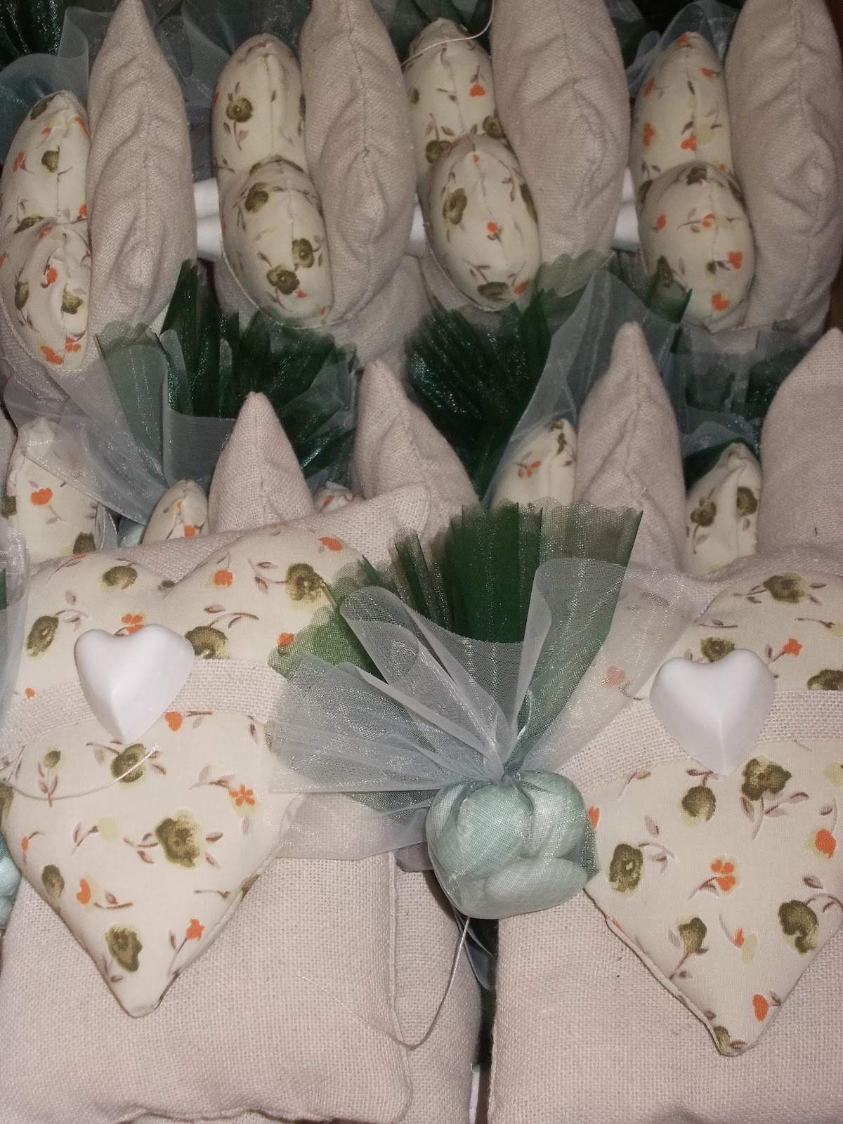 Queste 70 bomboniere sono state realizzate a mano, in tessuto grezzo