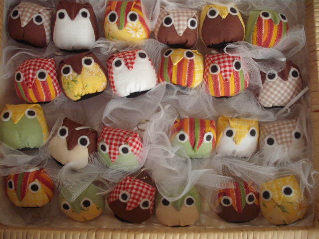 Eccoli ,pronti ,i gufetti porta chiave x la prima Comunione di Giuseppe,da regalare ai suoi compagni di classe...