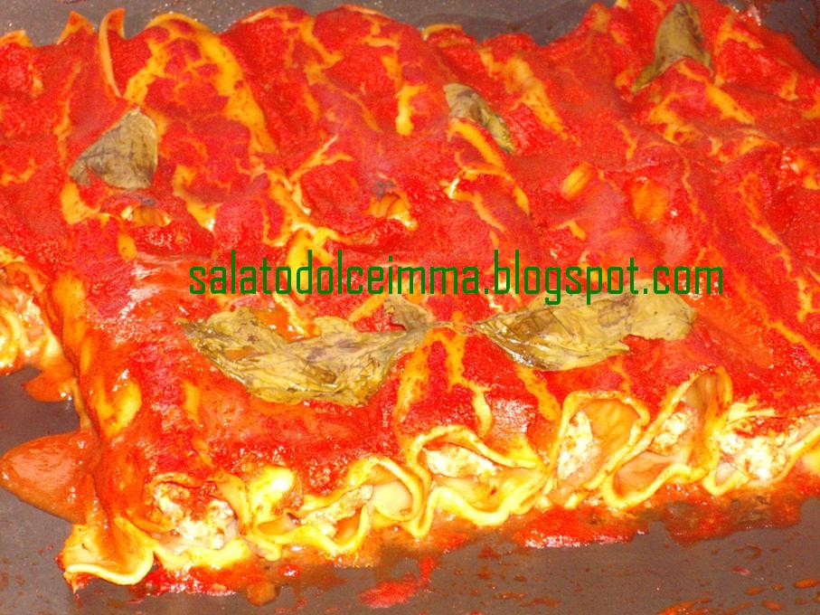 Cannelloni ripieni di carne di manzo macinata,ricotta romana,mozzarella o provola fresca affumicata,sale e grana.