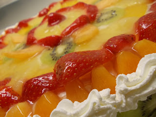 Torta di frutta x un papà speciale,fatta con pan di spagna,bagna al sapore di martini (che io adoro con la frutta) ,crema pasticcera all'ananas e decorata interamente di frutta e panna...............................................